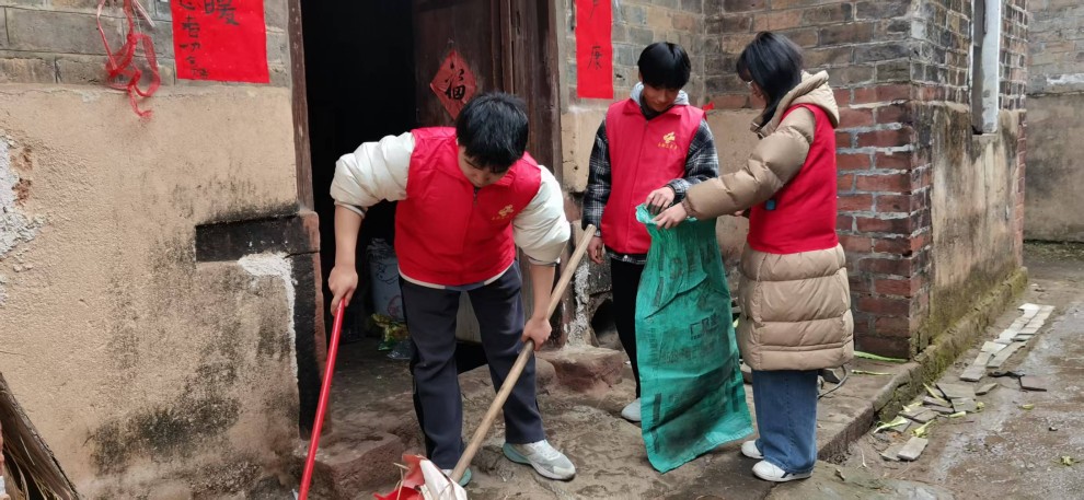 走进老人家中,志愿者们便忙碌起来:有的爬上梯子贴对联,有的拿起扫帚清扫院子,有的用抹布擦拭座椅。大家边干活边陪老人拉家常,原本安静的屋子顿时热闹起来,老人的脸上也露出了久违的笑容。