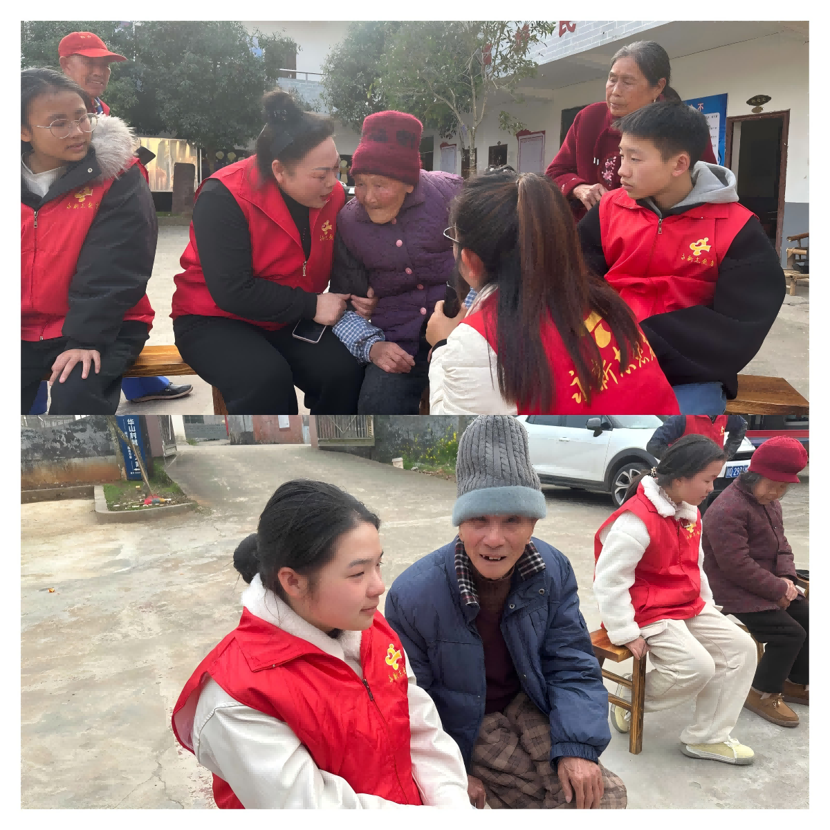 车未停稳,远远便望见老人们早已在门口翘首以盼,他们脸上挂着淳朴又灿烂的笑容,一声声 “新年好”在春风中传递着温暖。志愿者们一下车便各就各位:搬桌椅、布置场地、整理活动物料,井然有序。尹老师、苗苗老师负责主持互动,程老师在后厨忙碌备餐,王老师则细心为老人们测量血压,贴心守护健康。