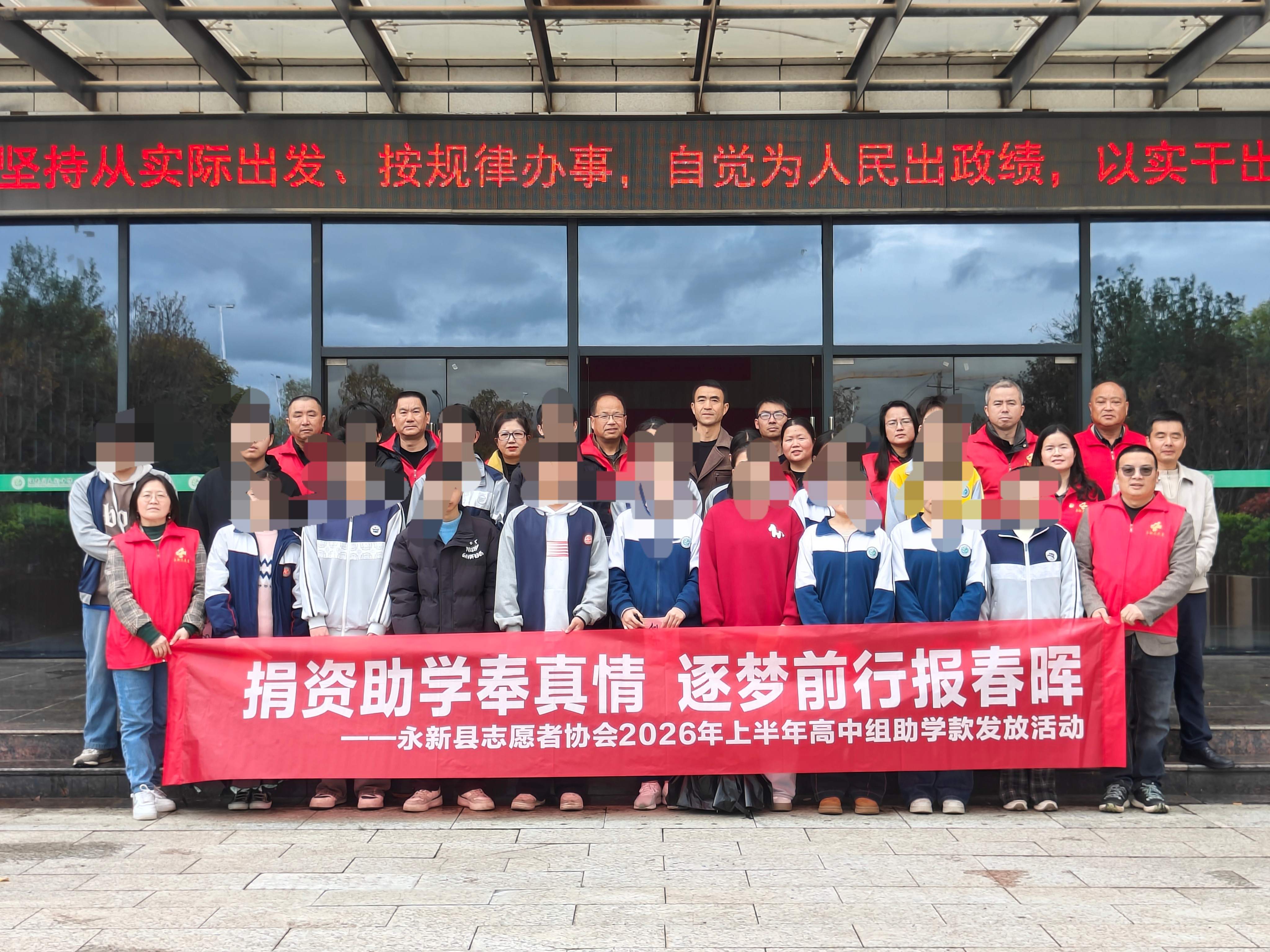 2026年4月3日中午,永新县志愿者协会在永新中学校史馆顺利举行2026年上半年高中组助学款发放活动。本次活动以“捐资助学奉真情,逐梦前行报春晖”为主题,旨在关爱家庭经济困难学生,助力他们安心完成高中学业,传递社会温暖与关怀。永新中学、永新二中相关领导,永新县志愿者协会理事长,以及受助学生和协会招募会员共计数十人参加了此次活动。