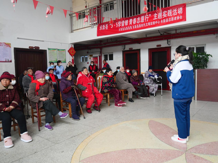 永新中学的少先队员为老人们献上了精心准备的文艺表演《漠河舞厅》《如愿》《兰亭集序》,清脆的歌声、悠扬的二胡声交织在福利院的空气中,连日阴雨带来的阴霾被一扫而空,老人们感受着少先队员的蓬勃朝气,脸上洋溢着幸福的微笑,现场气氛温暖而融洽。在歌声中、乐曲声中、欢笑声中、掌声中,他们的心连接在了一起,每个少先队员队员都更加深刻地感受到了奉献的快乐。